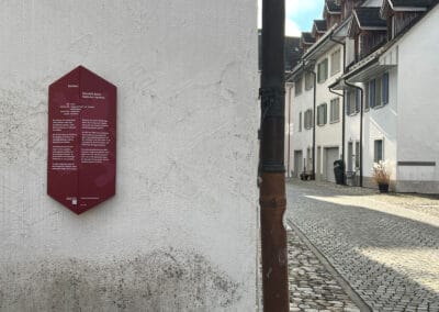 Spinform entwickelte und realisierte im Auftrag der Stadt Bremgarten ein umfassendes Konzept zur Vermittlung der Geschichte historischer Gebäude in der Altstadt. In enger Zusammenarbeit mit der kantonalen Denkmalpflege entstanden sechs thematische Rundgänge mit insgesamt 60 Tafeln. Neben Inhalt, Redaktion und Gestaltung verantwortete Spinform auch Planung, Produktion, Montage sowie die digitale Erweiterung der Beschilderung. Finanziert durch Kultur- und Lotteriefonds verbindet das Projekt analoge Orientierung vor Ort mit einer ergänzenden Online-Dokumentation.
