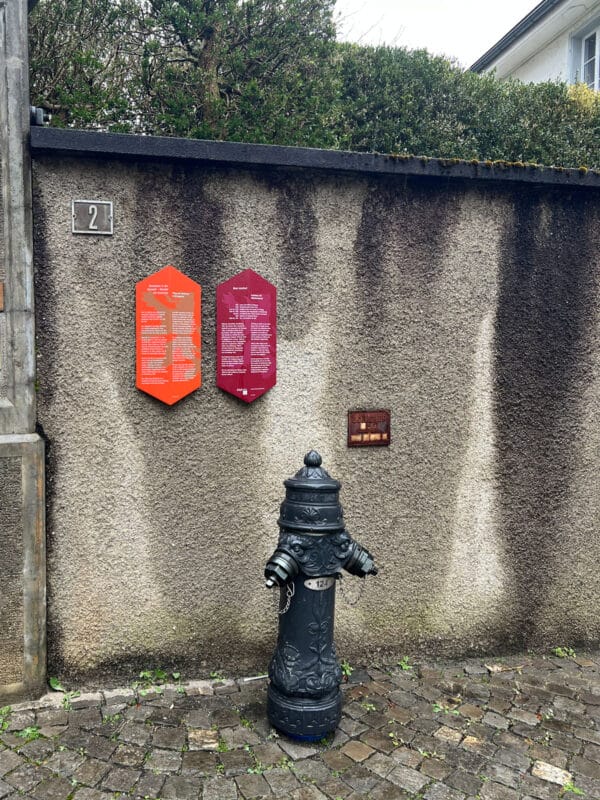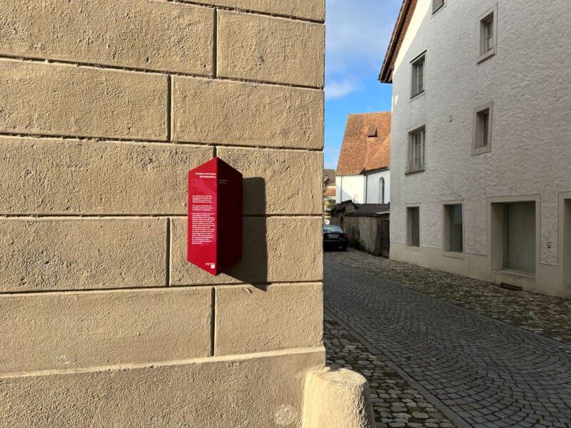- 49 Beschriftungstafeln für die Geschichte der Gebäude und Brunnen in der Altstadt