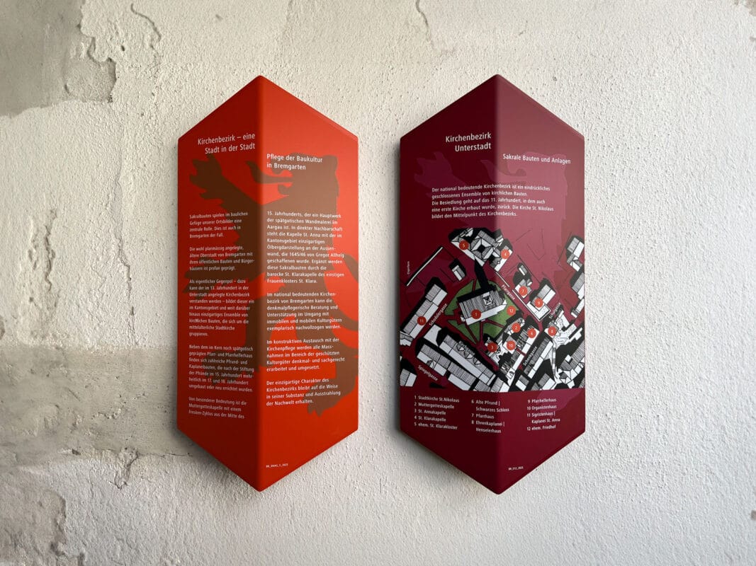 - 6 Beschriftungstafeln zur Aufgabe und Leistungen der Aargauer Denkmalpflege